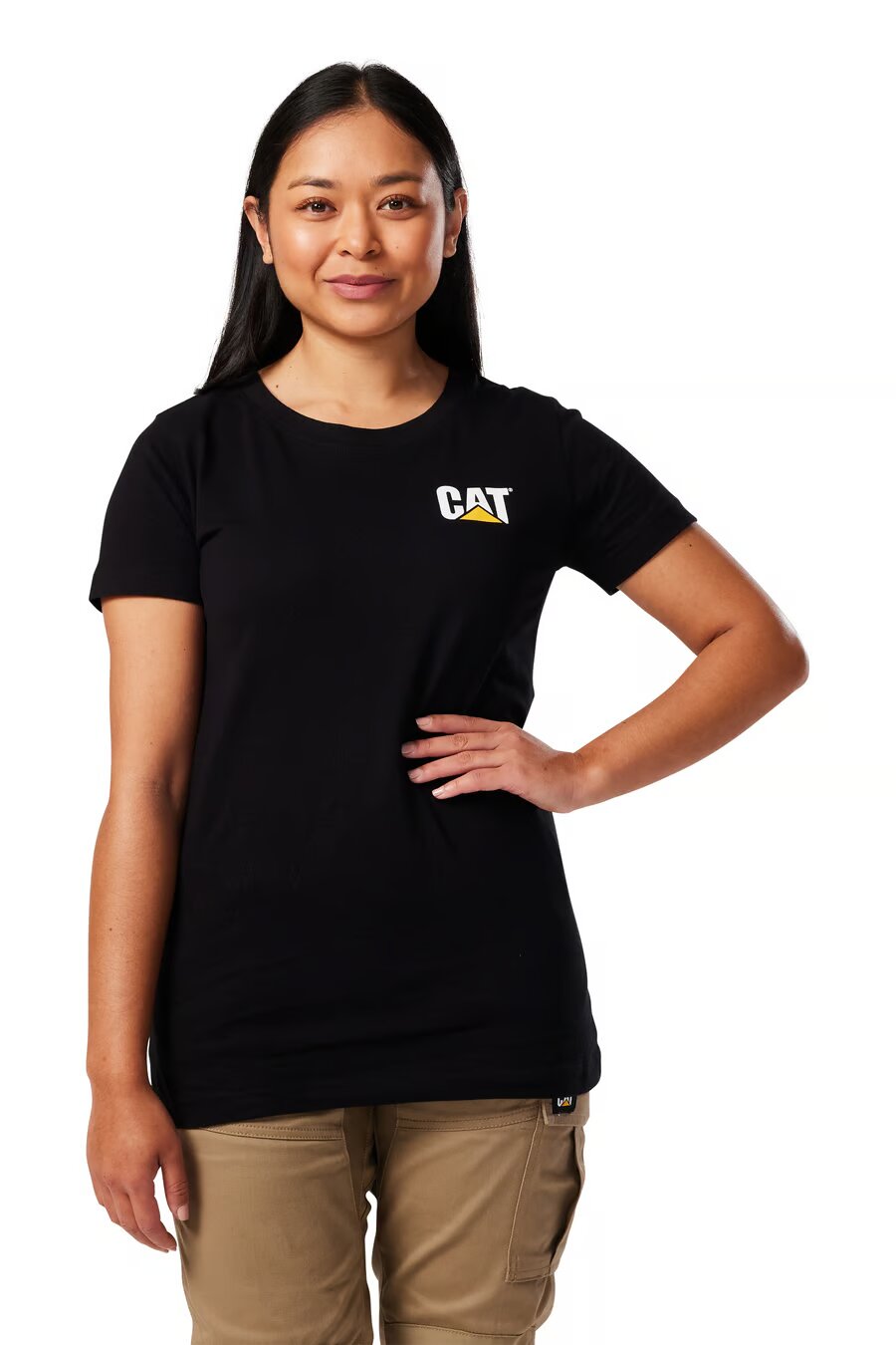 And, to further enhance comfort, this tee boasts a CAT yellow neck tape liner, adding a touch of sophistication to the inner neckline. The center front chest graphic stands out, asserting your presence, while the logo label on the left sleeve hem subtly showcases brand pride. Make a statement effortlessly every time you wear it.