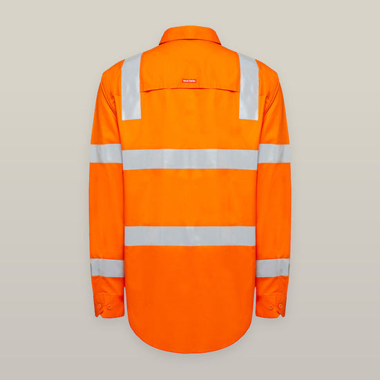 Discover the Hard Yakka Women's Biomotion Hi-Vis Taped Long Sleeve Shirt, a high-visibility workwear essential that prioritizes both safety and comfort. This shirt boasts ReflecTec 50mm retroreflective tape configured in Vic Rail and Biomotion patterns, ensuring visibility in various lighting conditions.