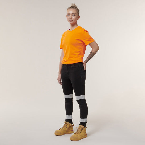 Introducing Hard Yakka Women's Taped Jeggings, the perfect combination of style and functionality. Crafted from stretch denim fabric with a soft hand feel, these jeggings offer comfort and flexibility.