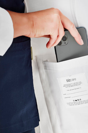 Our lab coat is machine washable, allowing for easy maintenance and cleaning. For best results, we recommend washing warm at 40°C. In addition, it can also be dry cleaned if preferred.