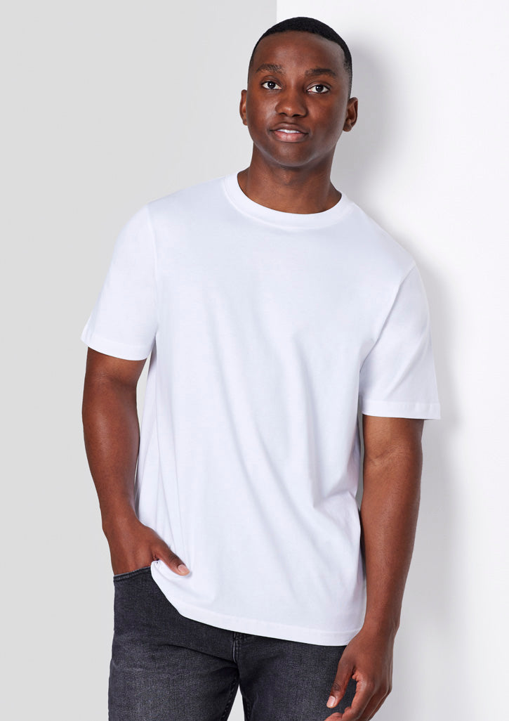 Featuring twin needle sleeve and body hem, these tees are durable and will hold up to repeated wear and washing. The ribbed elastane neck opening provides stretch and shape recovery, ensuring a comfortable fit every time. Plus, the easy tear-away label makes it easy to remove for re-branding.