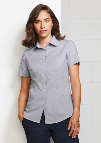 Our Jagger Women's S/S Shirt is made from an easy care blend of 60% cotton and 40% polyester. The fabric is yarn-dyed, ensuring long-lasting color and features a micro houndstooth pattern for added style.