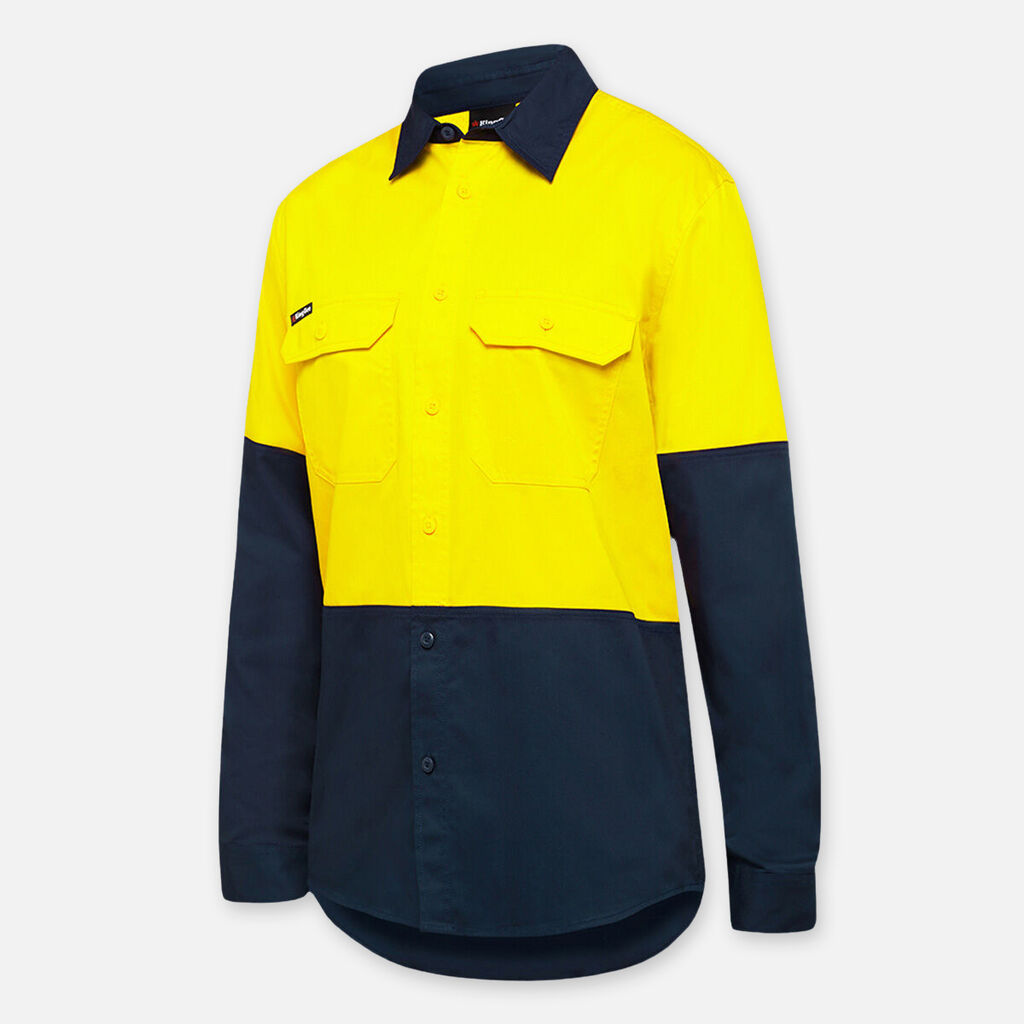 Elevate your workwear with KingGee Hi-Vis Stretch Long-Sleeve Work Shirts. Crafted from stretch fabric, these shirts provide added movement and comfort, allowing you to work with ease. They feature twin chest pockets with flap and button closure, along with a pen partition on the left-hand side for added convenience.