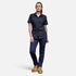 They feature a cargo pocket on the left-hand side, offering convenient storage for your essentials. Additionally, there's a phone pocket with a pen partition on the right-hand side, along with a ruler pocket. These pants are a practical choice for women working in various industries where flexibility and utility are essential.