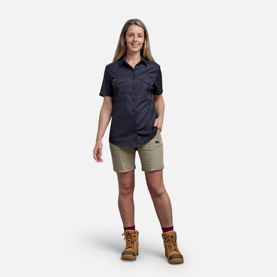 The Workcool Pro women's work shorts are the epitome of comfort for the active worker. Crafted from a smooth blend of cotton and elastane, these shorts are designed to move with you, featuring a comfort stretch waistband that adapts to your body. The stretch ripstop fabric ensures both comfort and durability, resisting tears and rips in the fabric.