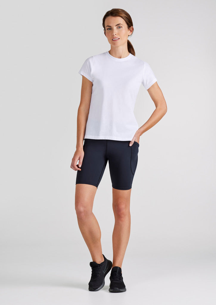 Our Luna Women's Comfort Bike Shorts are made from a blend of 72% certified recycled PET polyester and 28% elastane. This fabric weighs 250GSM and is made with the BIZ COOL™ technology, which provides excellent breathability and 4-way stretch.