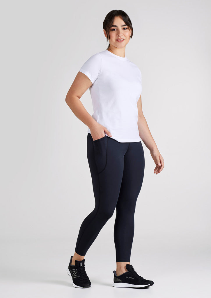 The Luna Women's Elegant 7/8 Length Leggings are crafted with a blend of 72% Certified Recycled PET Polyester and 28% Elastane fabric, weighing 250GSM. Made with the innovative BIZ COOL™ Breathable 4-way Stretch technology, these leggings offer exceptional comfort and flexibility.