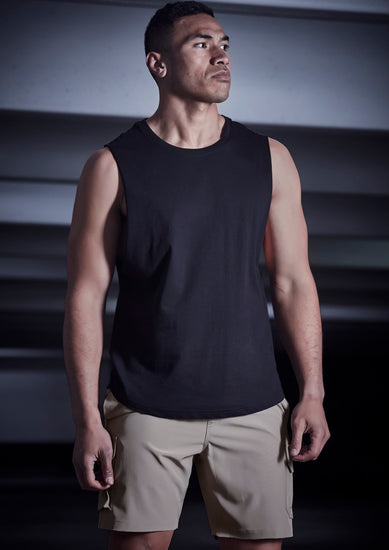Our Men's Sleeveless style features drop armholes with a raw edge finish, adding a rugged and casual element to the design. This style is perfect for individuals who prefer a sleeveless option during sports or warm weather activities.